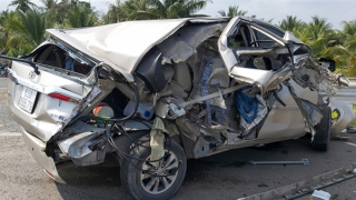 Hai người thoát chết trong chiếc xe biến dạng trên đường cao tốc