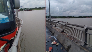 Xe khách lao vào thành cầu Rạch Miễu, nhiều hành khách hú vía