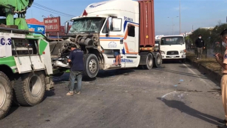 Xe khách né xe máy bị container tông, 3 người nguy kịch