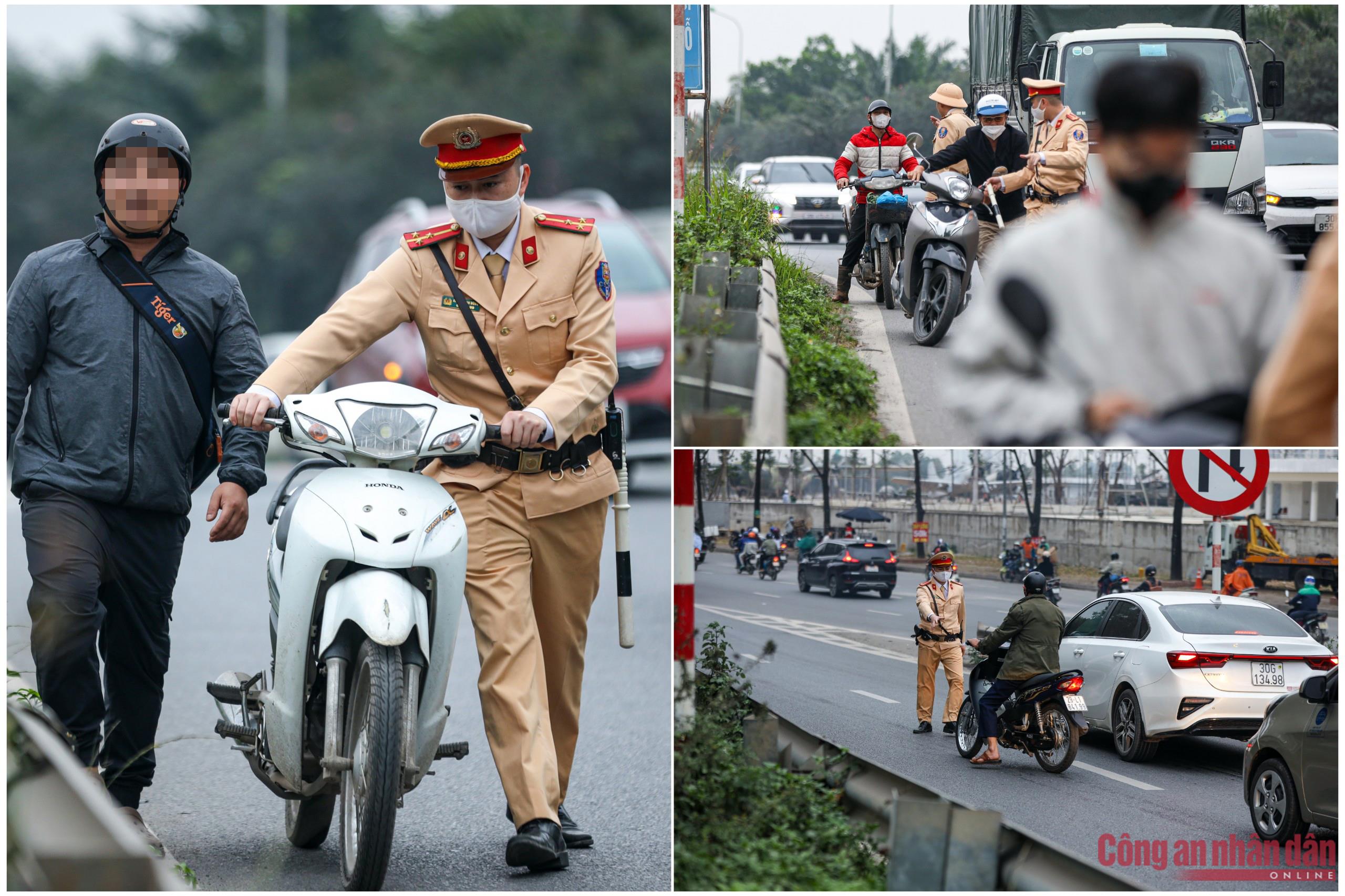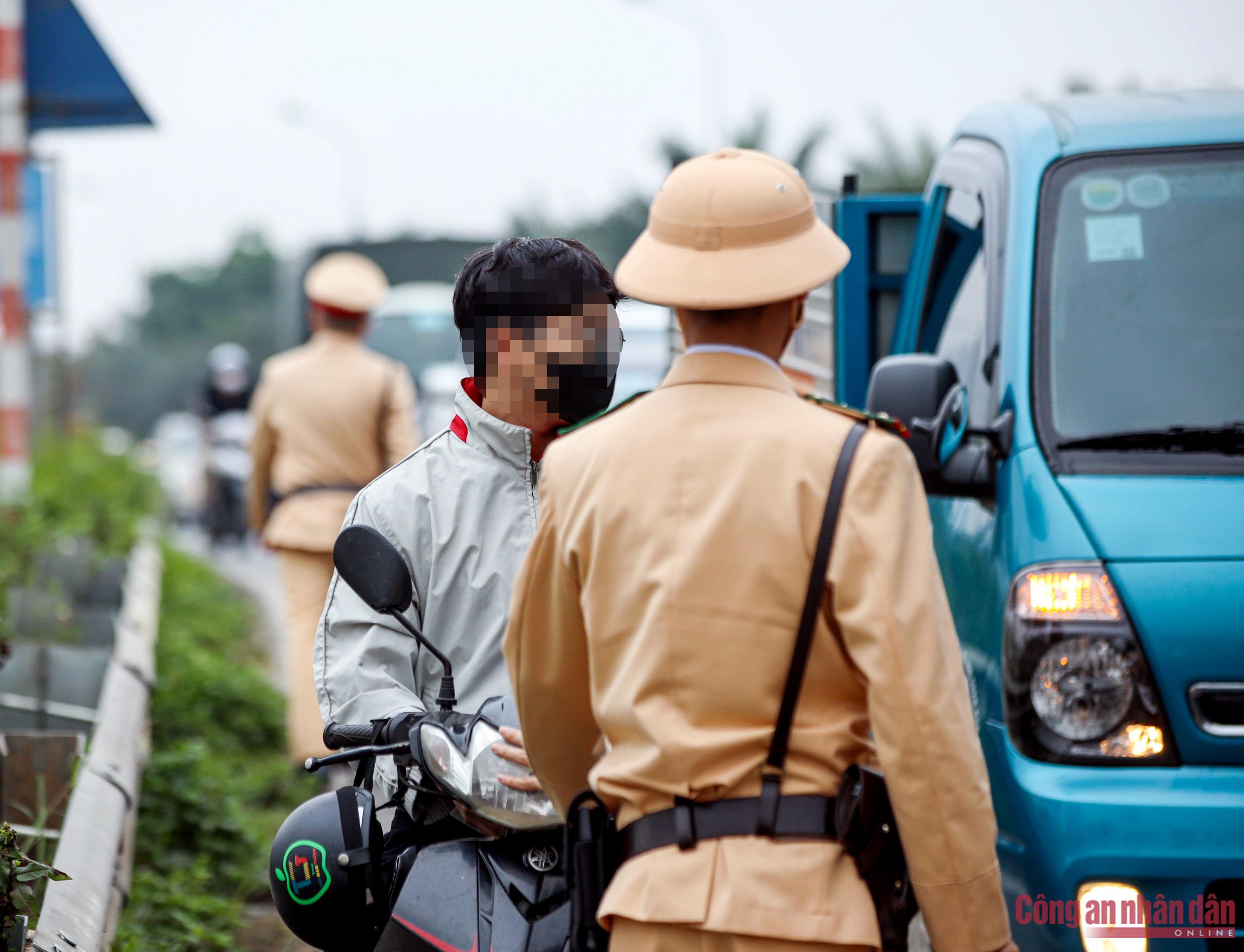 Ghi nhận thực tế của PV CAND giờ cao điểm chiều 22/2 trên cao tốc Đại lộ Thăng Long theo hướng đi huyện Thạch Thất, tổ công tác của Đội CSGT số 11 liên tục phát hiện, chặn dừng xử lý nhiều trường hợp vi phạm. Tuy nhiên, trong quá trình làm nhiệm vụ, Cảnh sát cũng phải đối diện nhiều nguy hiểm khi có những tài xế xe máy cố tình tăng ga uy hiếp hay quay đầu xe bỏ chạy.