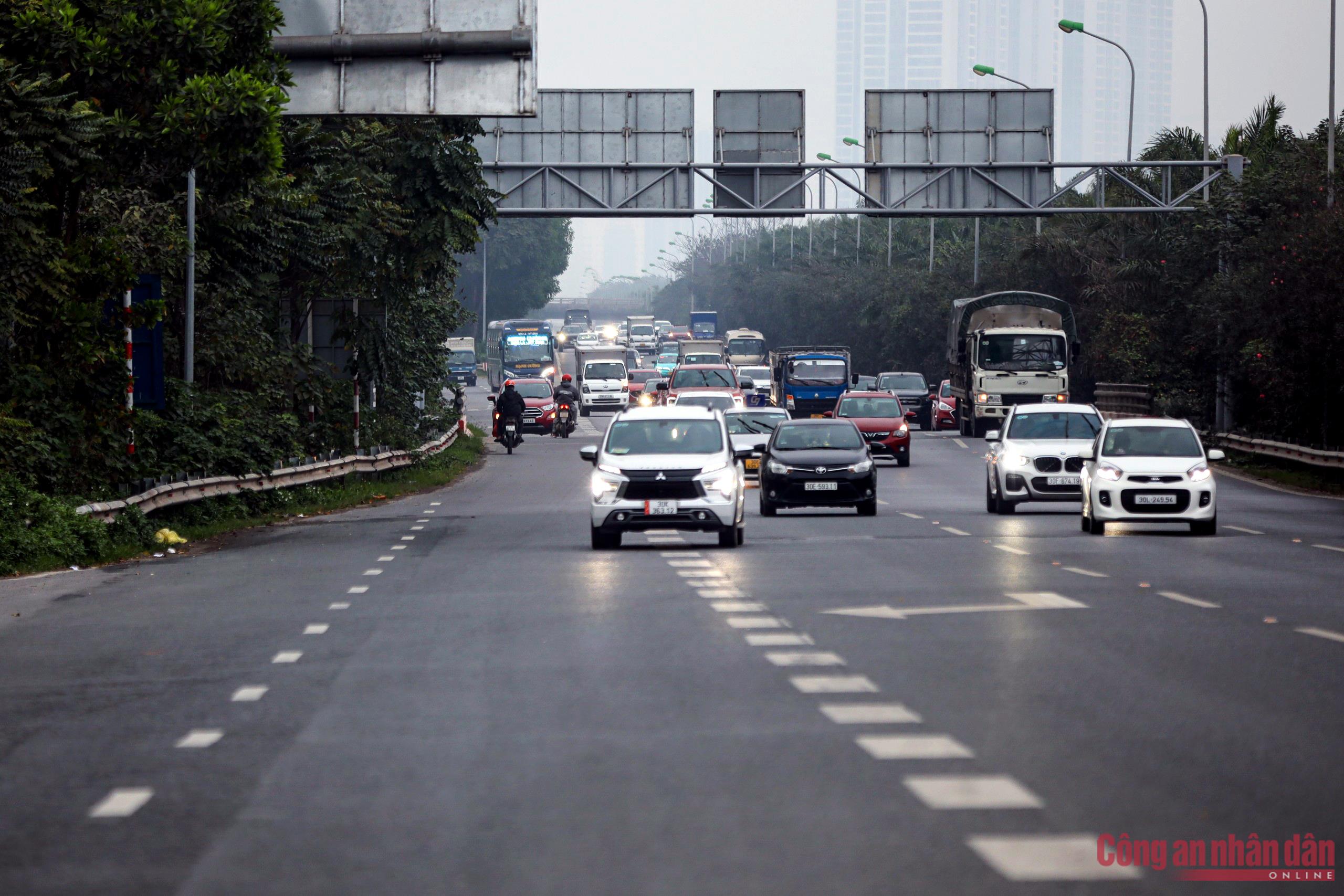 Hình ảnh cao tốc Đại lộ Thăng Long theo hướng đi huyện Thạch Thất (Hà Nội) chiều 22/2, xe máy chiếm đường để đi.