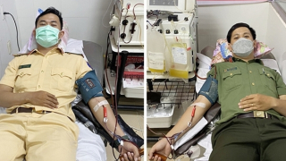 Hai thượng úy công an hiến máu cứu cụ ông U90