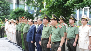 Chủ tịch nước Nguyễn Xuân Phúc duyệt đội danh dự CAND.Chủ tịch nước Nguyễn Xuân Phúc cùng các đồng chí lãnh đạo Bộ Công an.