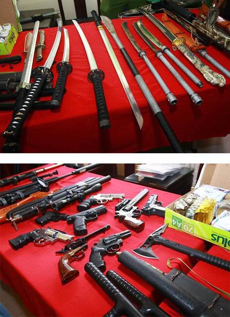 Quá trình điều tra, bắt giữ băng nhóm tội phạm có tổ chức trên, khám xét nơi tạm trú của Vũ Quang Hùng, cơ quan công an đã thu giữ 11 khẩu súng (gồm 3 súng dài có ống ngắm, 8 súng ngắn), hơn 1.000 viên đạn và nhiều dao kiếm, 1 túi ma túy tổng hợp, 438 giấy tờ liên quan đến việc cho vay nợ với tổng số khoảng 4,8 tỷ đồng, 43 CMND, 17 sổ hộ khẩu, 6 hộ chiếu. .