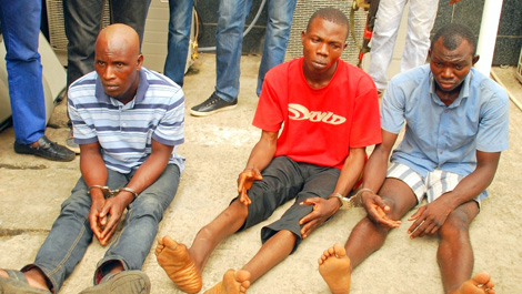 | 3 tên bắt cóc tống tiền bị cảnh sát Nigeria bắt giữ hồi tháng 1-2017. |