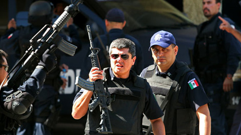 | Cảnh sát liên bang Mexico tuần tra đường phố Acapulo sau khi xảy ra vụ 20 du khách nước ngoài mất tích cuối tháng 9-2010 được cho là bị bọn tội phạm ma tuý bắt cóc. |