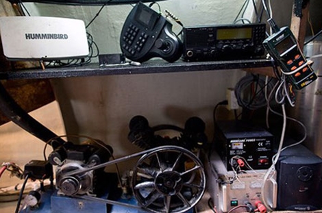 | Mổ xẻ động cơ của chiếc tàu ngầm vận chuyển ma túy. |