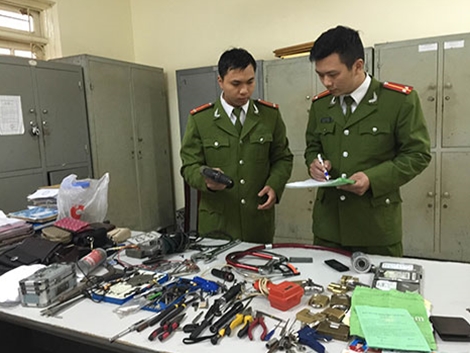 Cơ quan Công an kiểm tra bộ “đồ nghề” trộm cắp của Lưu Anh Tuấn.