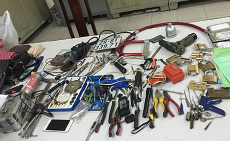 Đối tượng thu thập và tự chế rất nhiều dụng cụ để mở, phá các loại khóa.