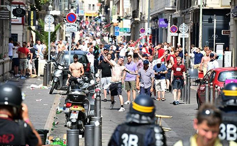 EURO 2016 tiếp tục chứng kiến cảnh tượng bạo loạn bên ngoài sân cỏ giữa các nhóm CĐV quá khích. Hôm 15-6, sau khi trận đấu giữa đội tuyển Nga và đội tuyển Slovakia khép lại, hàng trăm CĐV Anh đã đổ xuống “mừng đến điên cuồng trước thất bại của những chú gấu Nga”. Họ thậm chí còn hô vang “Chúng tôi ghét nước Nga” trên khắp các con phố của thành phố Lille.