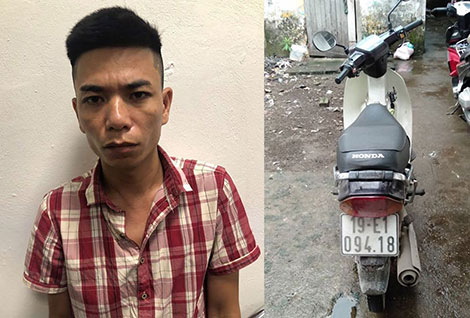 | Đối tượng Nguyễn Văn Dũng và chiếc xe tang vật. |