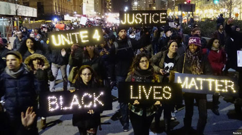 | Người da màu xuống đường biểu tình phản đối nạn phân biệt chủng tộc tồn tại trong giới cảnh sát Mỹ. |