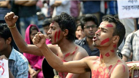 | Sinh viên và các nhà hoạt động xã hội biểu tình sau cái chết của Avijit Roy. |