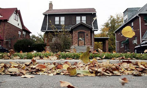Một con phố có những ngôi nhà bị bỏ hoang.
