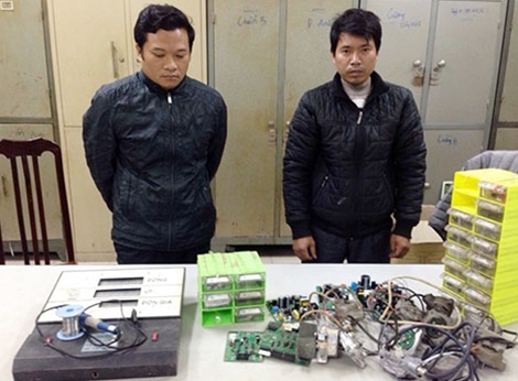 | Các đối tượng cung cấp, lắp chip điện tử gian lận bị bắt giữ cùng tang vật. |