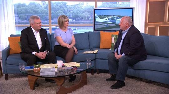 | Eddie Maher (bìa phải) trong cuộc phỏng vấn trên truyền hình Anh tháng 8-2017 |