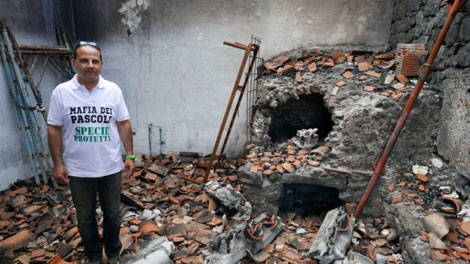 | Sebastiano Blanco bên căn nhà bị phóng hỏa của mình. |
