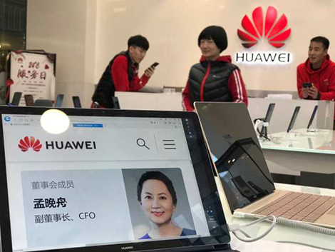 | Tiểu sử bà Mạnh trên màn hình máy tính ở cửa hàng Huawei tại Bắc Kinh - Theo Canadian Press. |