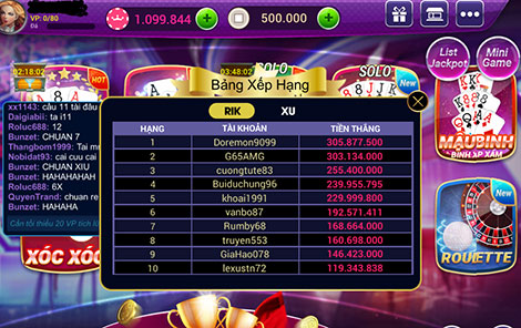 | Một bảng “phong thần” trong game Rikvip. |