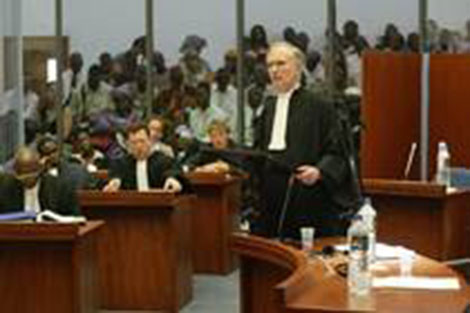 | David Crane (đứng) tại buổi khai mạc phiên tòa xét xử Charles Taylor ở Sierra Leone. |