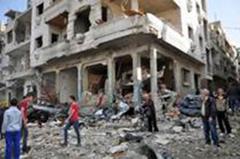 | Thành phố Homs đổ nát vì nội chiến ở Syria. |