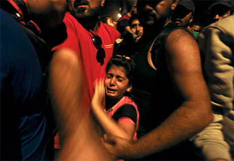 | Một bé gái Syria gào khóc khi bị những người di cư và tị nạn khác chèn ép tại biên giới của Hy Lạp và Macedonia. Ảnh Reuters. |