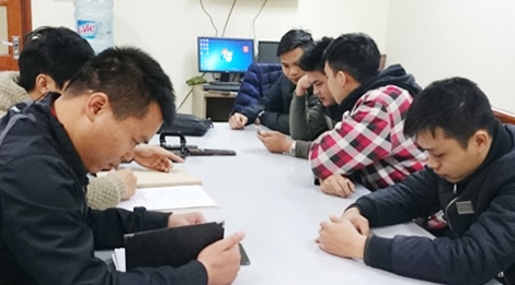 | Các trinh sát Đội 3 PC52 đang thảo luận kế hoạch truy bắt đối tượng truy nã. |