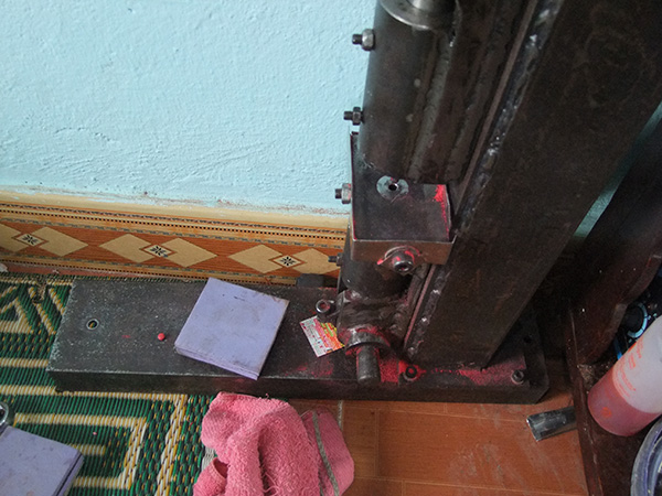 | Máy dập viên nén ma túy tổng hợp do Đặng Huy Báu tự chế. |