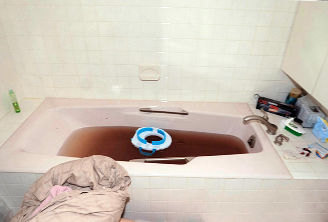 Nhiều khả năng, tay chồng mất nết này đã dùng chìa khóa của mình mở cửa, đột nhập vào nhà và xiết cổ vợ đến chết. Sau đó, anh ta đặt thi thể vào bồn chứa đầy nước, giả mạo mọi chi tiết cho giống một vụ tai nạn rồi trở về nhà.