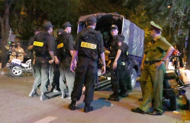| Các cán bộ Công an làm nhiệm vụ đảm bảo an ninh trật tự. |