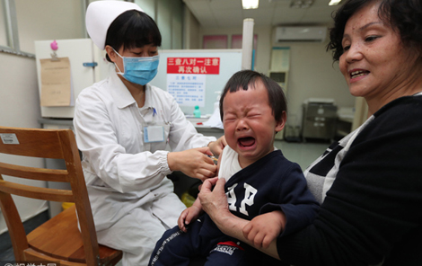| Một trẻ em được tiêm chủng ở Trung Quốc. Ảnh: China Plus. |