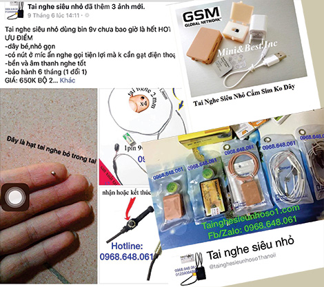 | Các thiết bị gian lận thi cử được rao bán tràn lan trên mạng xã hội. |