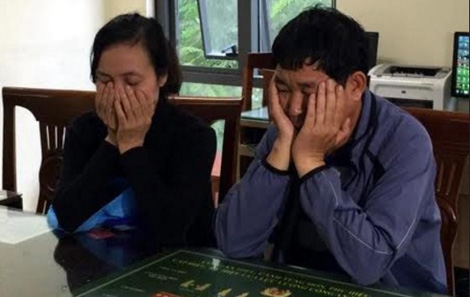 | Cặp vợ chồng Thanh - Tý tại cơ quan Công an. |