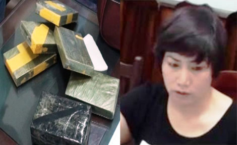 | Đối tượng Nguyễn Thị Thu Hiền bị bắt cùng 7 bánh heroin chuẩn bị đưa lên tàu. |