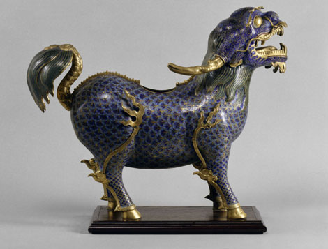 | Con nghê bằng sứ nạm vàng là một trong những hiện vật quý hiếm bị bọn trộm nẫng đi. |
