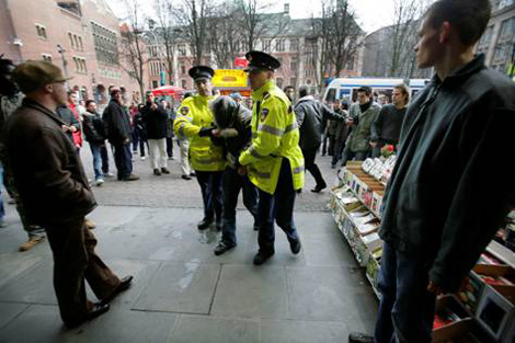 Cảnh sát bắt giữ tội phạm trên đường phố. |