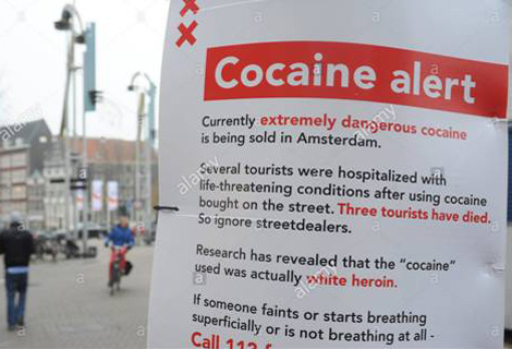 | Biển cảnh báo du khách đến Amsterdam không mua ma túy bán lẻ trên đường phố. |