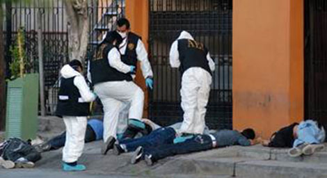 | Hiện trường tội phạm ở Monterey (Mexico). Bạo lực liên quan đến ma túy cướp đi hơn 40.000 mạng người từ cuối năm 2006 đến nay. |