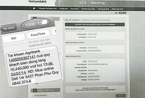 Lúc này, “Tran Ngoc” gửi cho anh Tùng ảnh chụp màn hình máy tính thể hiện bản sao kê phiếu chuyển khoản số tiền 43 triệu đồng vào tài khoản của anh Tùng, được thực hiện thông qua dịch vụ Internet Banking của ngân hàng Vietcombank. Thấy cuối bản sao kê có dòng chữ “Giao dịch chuyển khoản thành công”, anh Tùng tin “Tran Ngoc” đã gửi tiền xong nên giao điện thoại cho người thanh niên đi xe Wave.