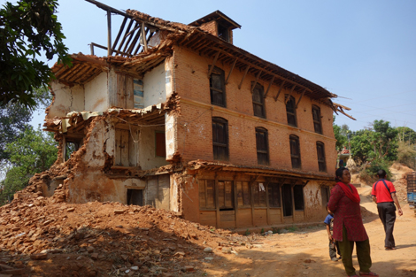 | Một ngôi nhà bị thiệt hại nặng nề sau trận động đất tháng 4-2015. |