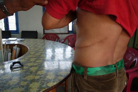 | Một người bán thận cho thấy vết sẹo trên cơ thể. |