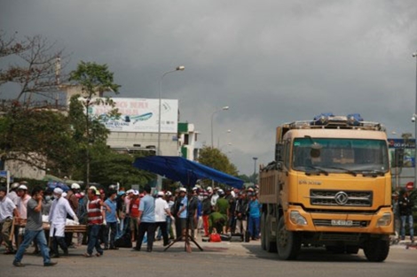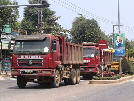 | Từng đoàn xe ben chạy trên đường phố Đà Nẵng. |