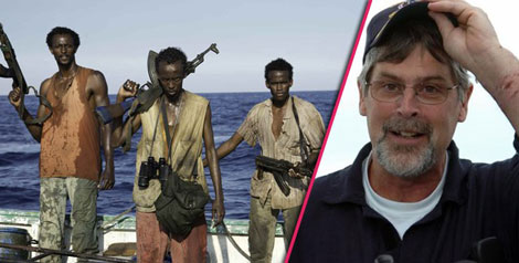 Cướp biển Somalia từng bắt cóc con tin người Mỹ (phải).