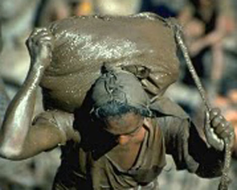 Từ tinh mơ đến tối mịt, hàng vạn người lao động cật lực, vác những bao đất nặng cả 40kg với hy vọng kiếm được chút ít bụi vàng nhỏ nhoi chứa trong đó. Trung bình mỗi ngày có từ 50.000 đến 80.000 người hì hục theo kiểu “Ngu Công dời núi”. Người ta gọi họ là những “garimpeiros” (người tìm vàng theo tiếng Bồ Đào Nha là ngôn ngữ chính thức ở Brazil). Tại những nơi khác họ lại tìm kim cương hoặc các loại đá quý.