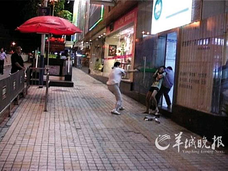 Khoảng 8 giờ tối ngày 6-7-2010, một đối tượng chuyên cướp giật đã trấn lột tài sản của một người tại Nam Lộ, trạm Quảng Châu. Bị phản kháng, tên này đã vung dao đâm nạn nhân trọng thương rồi bỏ chạy. Tiếp đó, khi bị cảnh sát đuổi theo, hắn dùng dao kề cổ uy hiếp một cô gái là chủ một cửa hiệu làm con tin. Hắn yêu cầu mọi người không được tới gần, đòi cảnh sát phải đưa một chiếc xe đến cùng với 10.000 tệ để hắn đi.