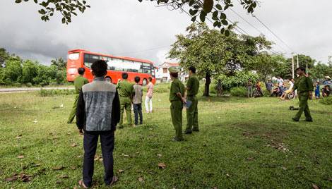 CSĐT Công an huyện Đăk Tô tiến hành thực nghiệm hiện trường vụ ném đá xe khách giường nằm đêm 1/7/2015 trên địa bàn xã Tân Cảnh. |