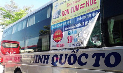 Chiếc xe giường nằm của nhà xe Minh Quốc không may mắn như vậy. Lọt vào cơn mưa gạch, chiếc xe BKS 82K-5677 do tài xế Trần Đức Việt điều khiển đã bị vỡ kính chiếu hậu bên phải. Kính chắn gió ô số 3 của xe khách cũng vỡ tan, mảnh kính bay ra văng vào mắt của cháu Lê Hà Phương Uyên.