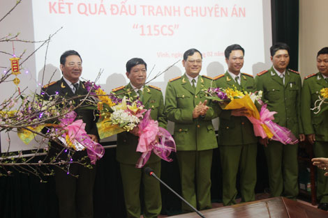 Để động viên cán bộ, chiến sĩ tham gia phá án, đồng chí Bí thư Thành ủy Vinh và lãnh đạo Công an tỉnh đã đến Công an TP Vinh tặng hoa chúc mừng thành tích xuất sắc của Ban chuyên án.