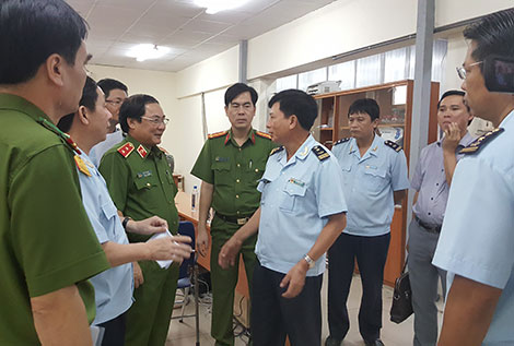 | Trung tướng Đồng Đại Lộc trao đổi với cán bộ Hải quan. |