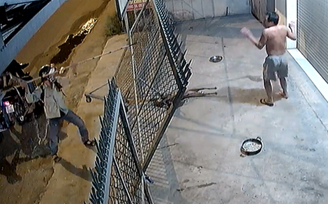 | Cảnh "cẩu tặc" tấn công chích điện người dân khi bị phát hiện (ảnh trích từ clip). |